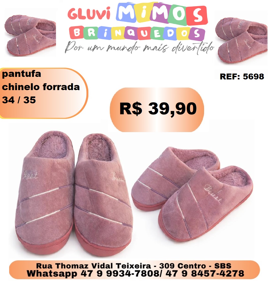 Pantufa Adulto Tamanho 35-36 Unidade – Cores Sortidas