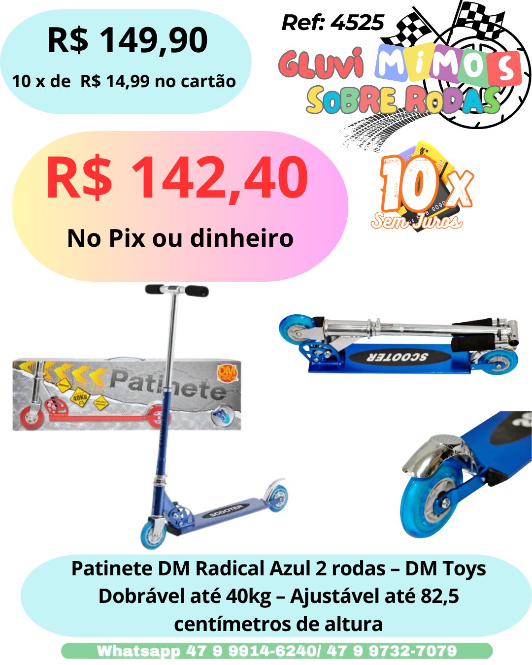 O Patinete DM RADICAL é todo de alumínio e por isso super leve e prático. É dobrável, fácil de guardar e você leva ele para qualquer lugar. Disponível em 02 cores.