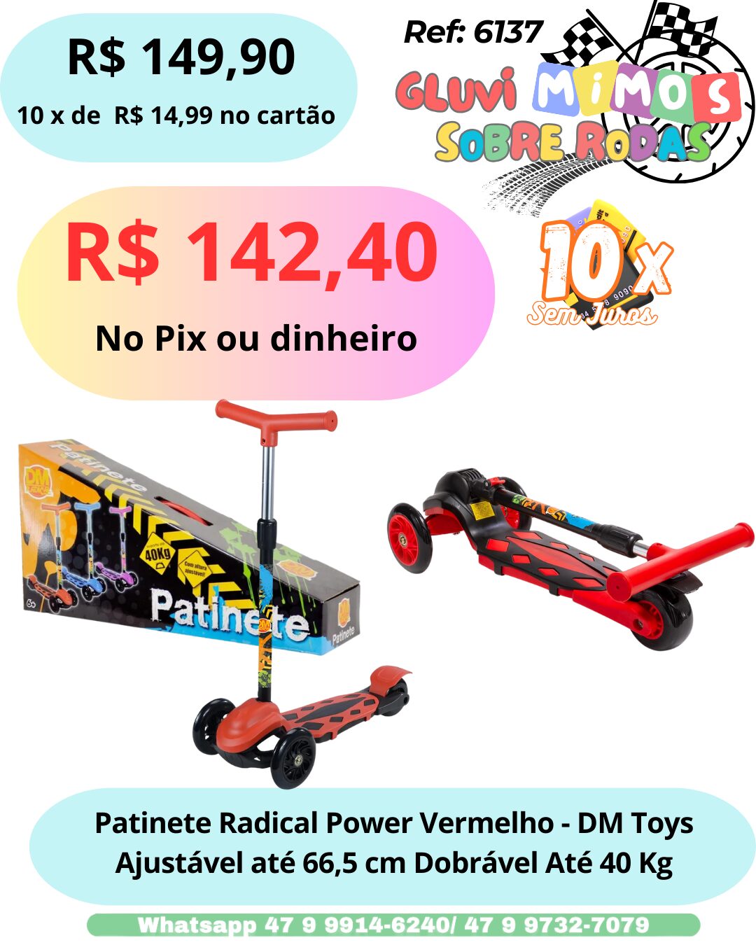 O Patinete Radical Power é lindo. É dobrável e super prático de transportar para brincar em qualquer lugar.