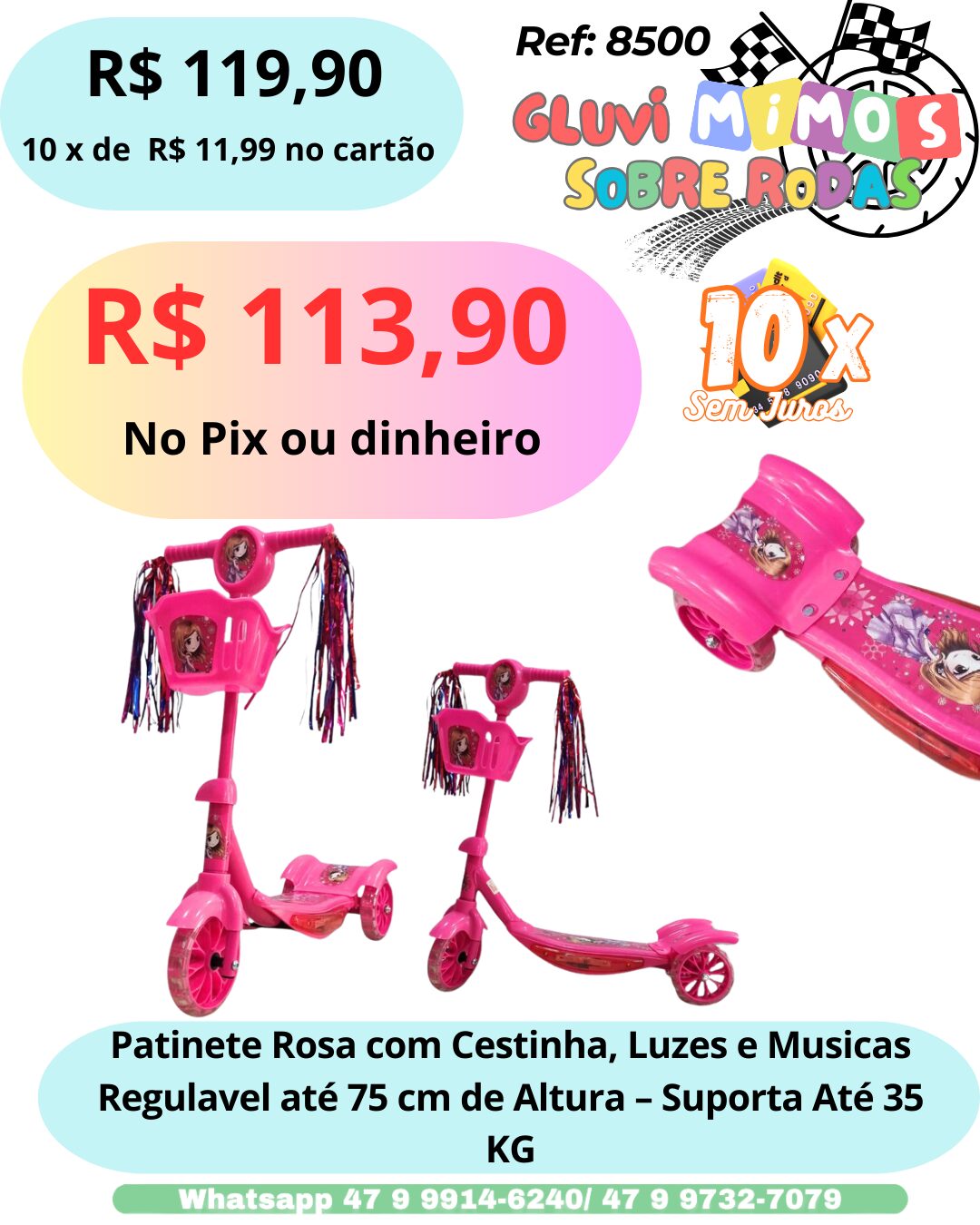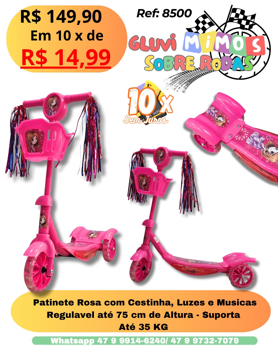 Seja o primeiro a avaliar “Patinete Rosa com Cestinha, Luzes e Musicas Regulavel até 75 cm de Altura – Suporta Até 35 KG”