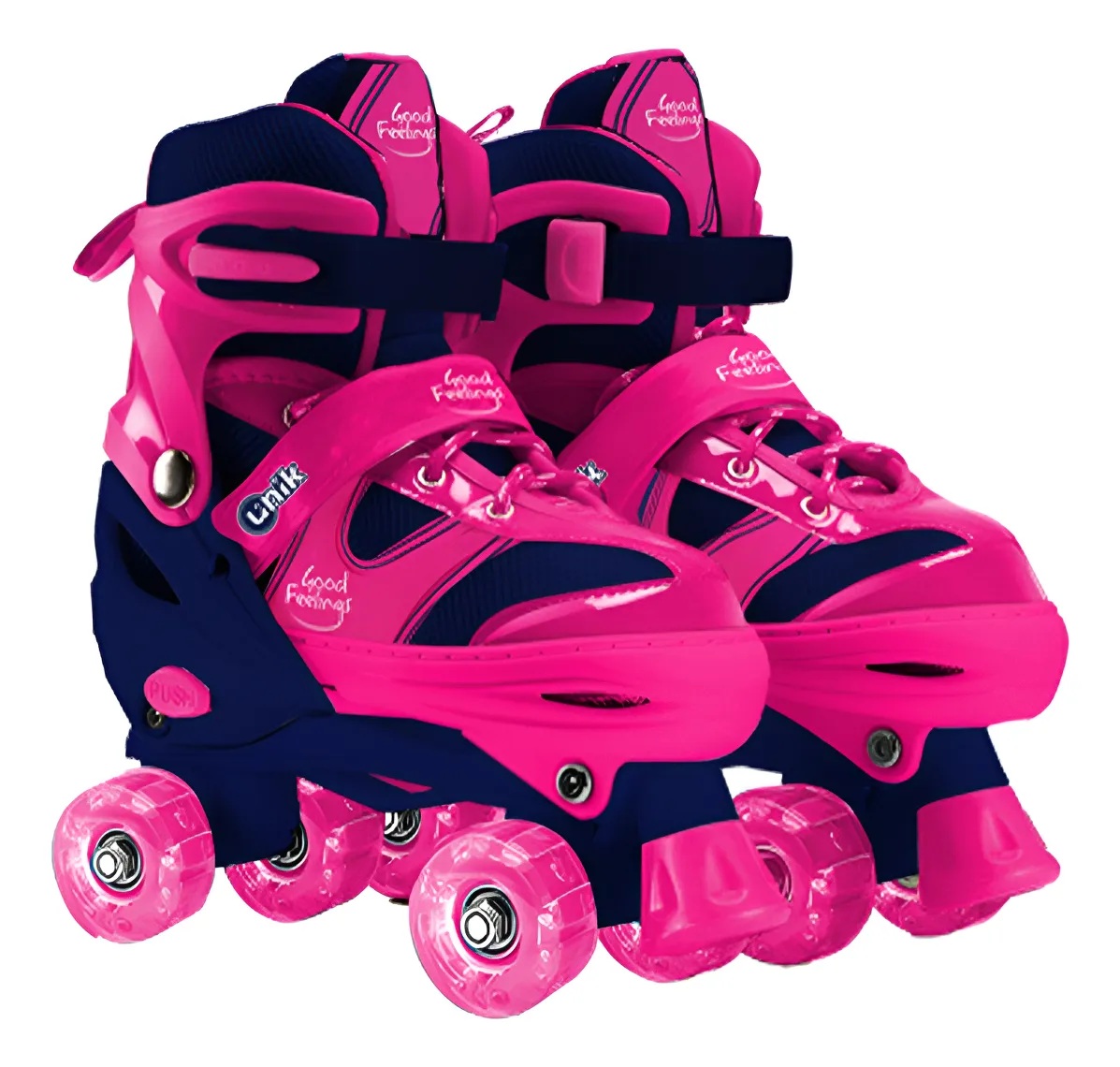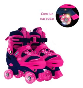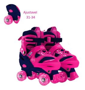 Patins Roller Infantil Ajustável Luz 4 Rodas 31-34 Suporta até 50 kg
