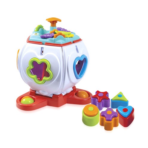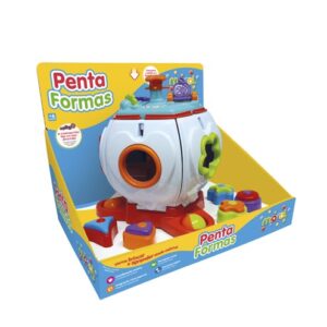 Ele é penta funções! Vem com cinco formas didáticas super divertidas que estimulam o raciocínio lógico. A minhoquinha toca uma linda melodia instigando a percepção de sons e rodinhas e barbante para puxar. Além de dois acessórios mais que trazem o senso de movimento. E… Surpresa!! Quando a criança pressiona o botão, o Penta Formas abre todas as portas!