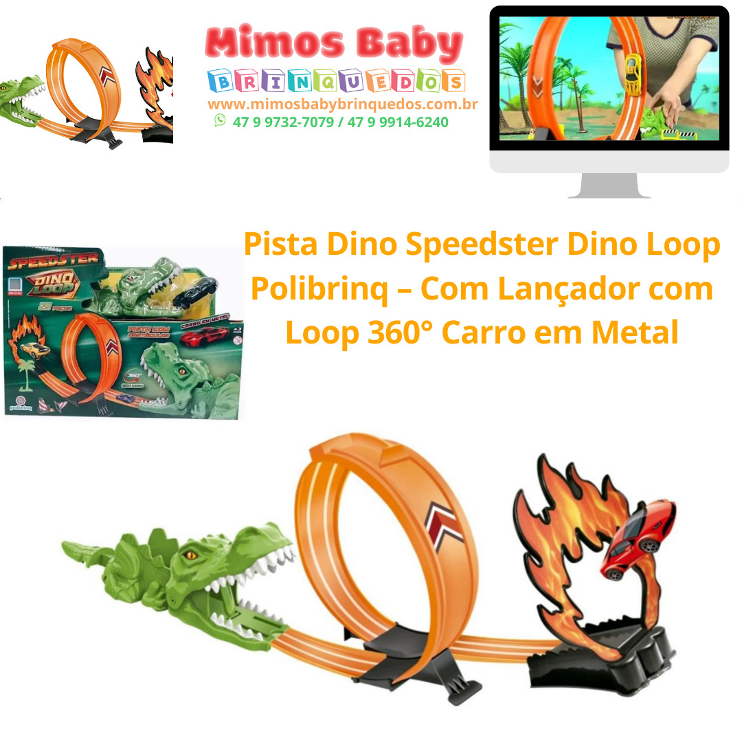 Pista Dino Speedster Dino Loop – Polibrinq – Com Lançador com Loop 360° Carro em Metal