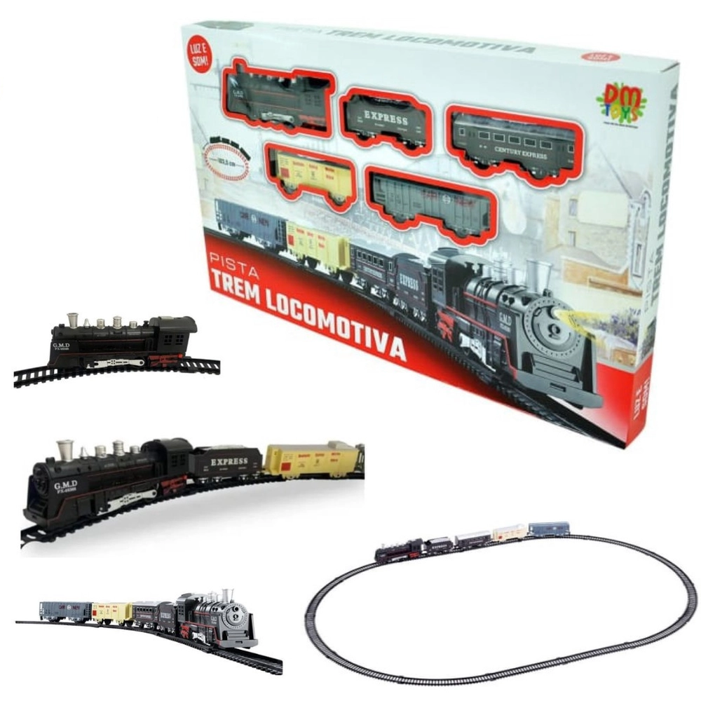 Pista trem locomotiva com luz -Essa pista Trem Locomotiva da dm Toys os pequenos(a) podem trabalhar a coordenação motora, imaginação e interação entre pais e filhos. Interativa, ela emite sons e luzes que deixam a brincadeira muito mais animada. O brinquedo é seguro e certificado pelo inmetro.