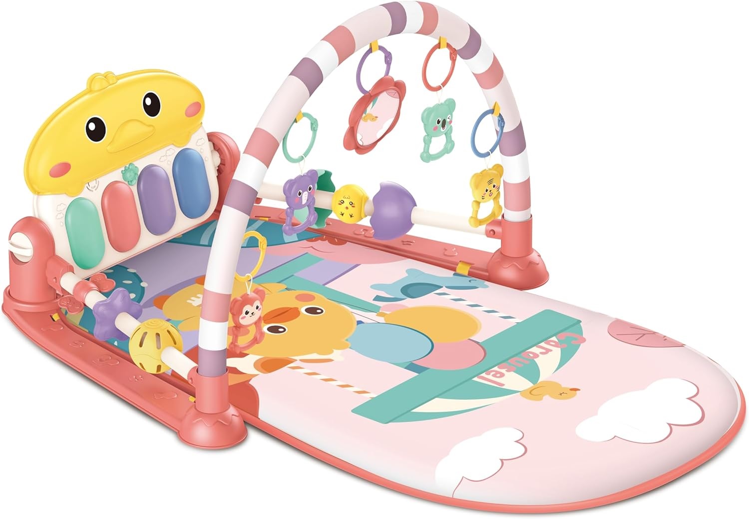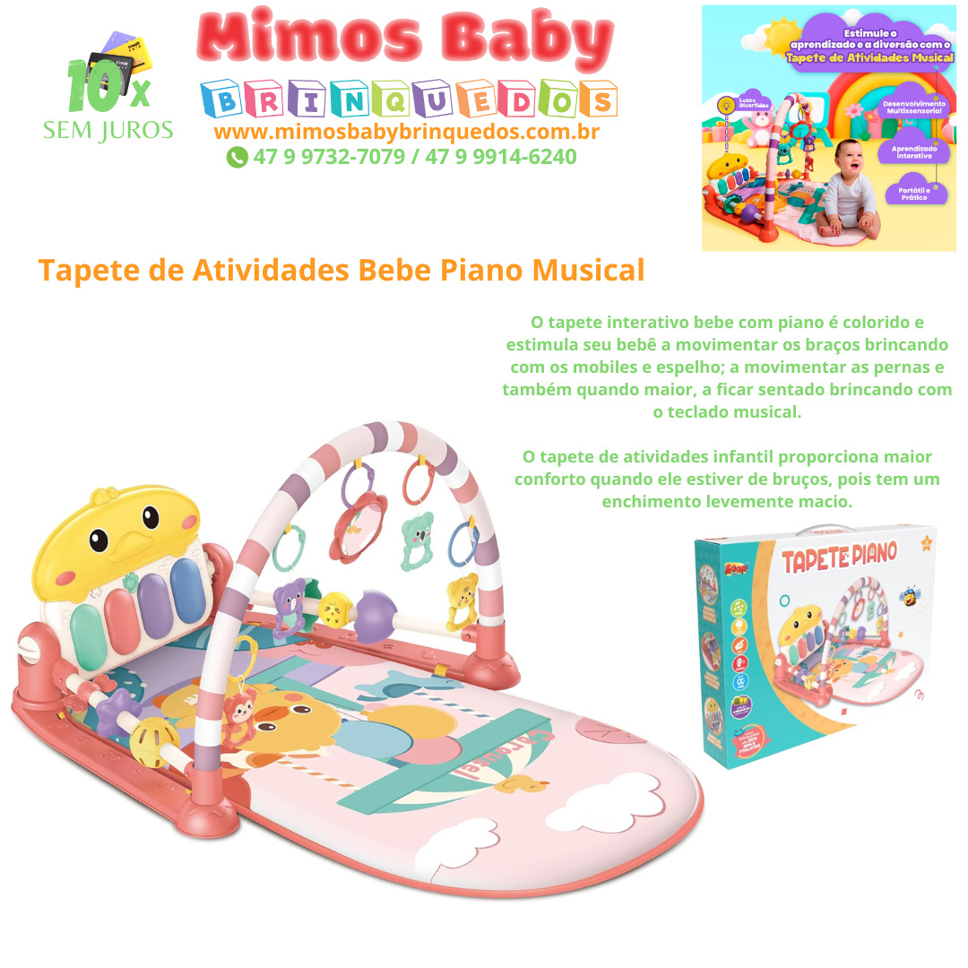 O tapete interativo bebe com piano é colorido e estimula seu bebê a movimentar os braços brincando com os mobiles e espelho; a movimentar as pernas e também quando maior, a ficar sentado brincando com o teclado musical.