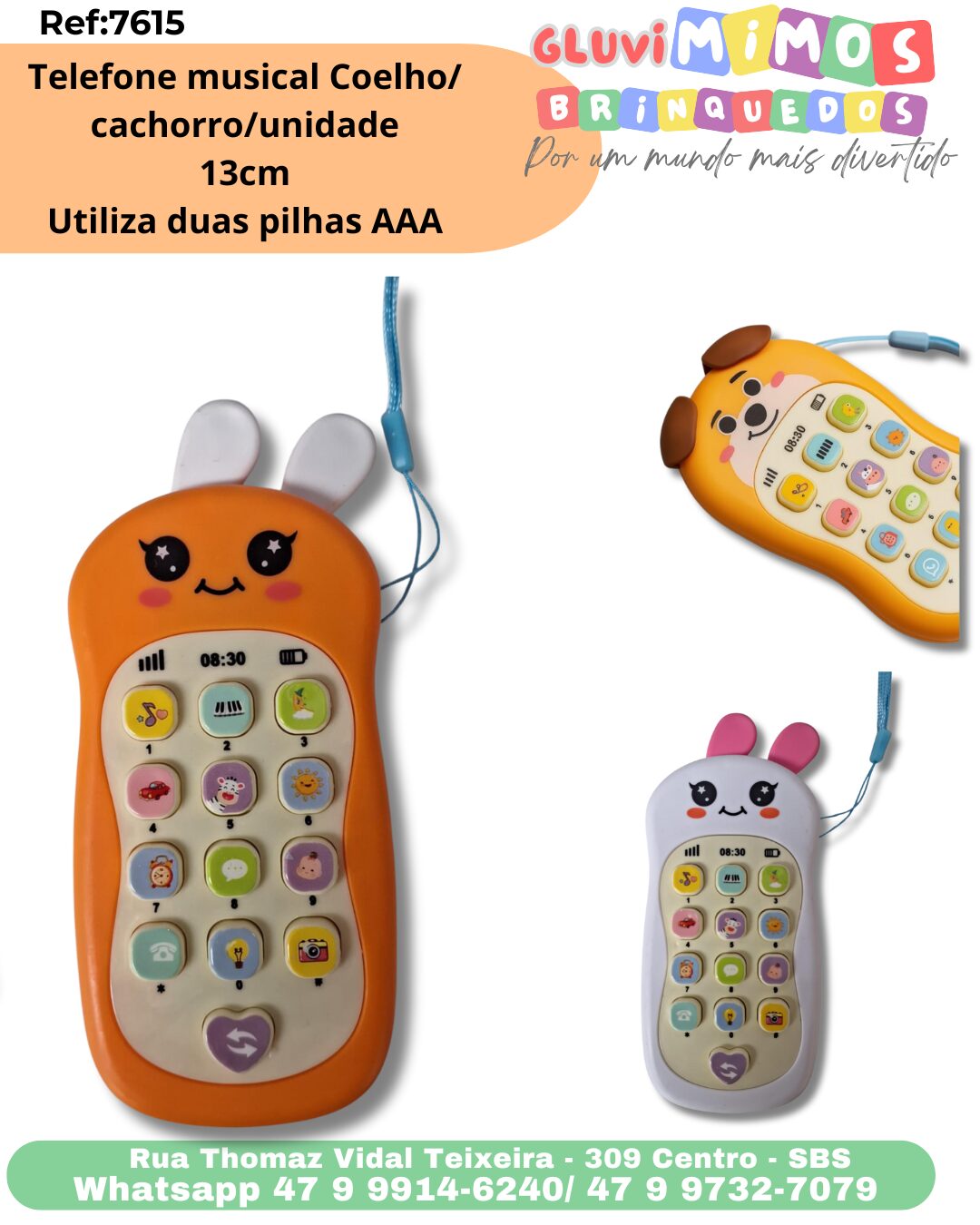 Telefone musical Coelho/ cachorro/unidade 13cm Utiliza duas pilhas AAA