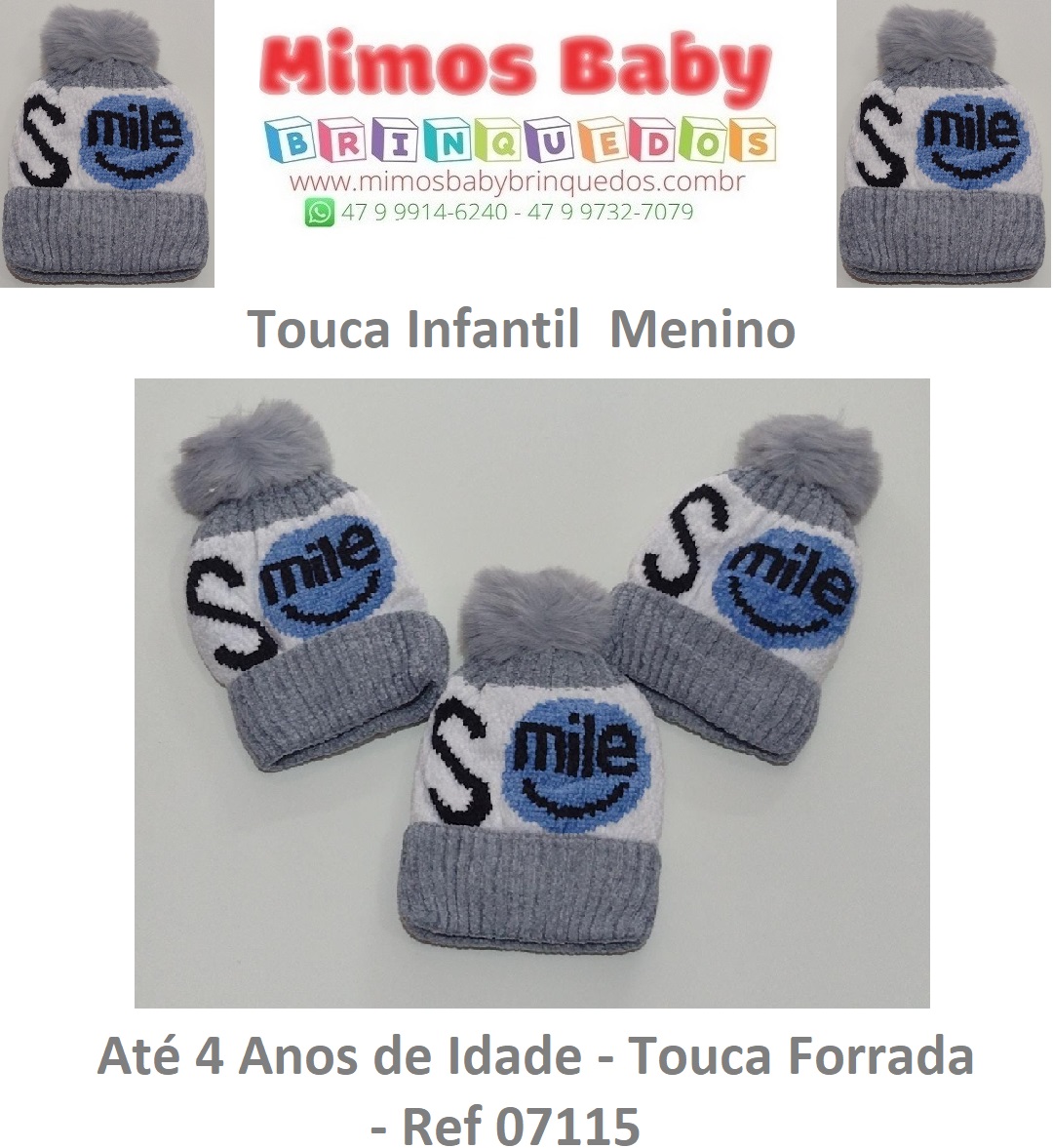Touca Infantil Menino Até 4 Anos de Idade – Touca Forrada – Ref 07115