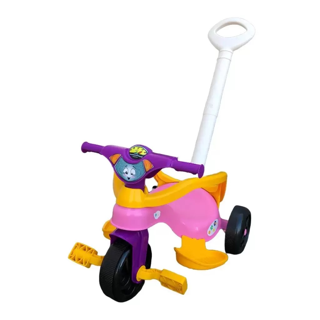Triciclo Encantado Rosa Empurrador Proteção , Apoio para os Pés