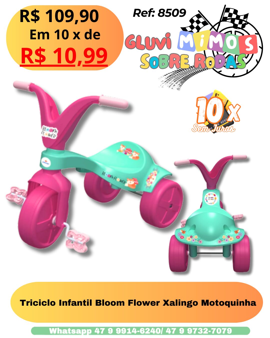 Passear no parque, na praça ou até mesmo brincar em casa pode ser ainda mais divertido com o triciclo Bloom Flower!