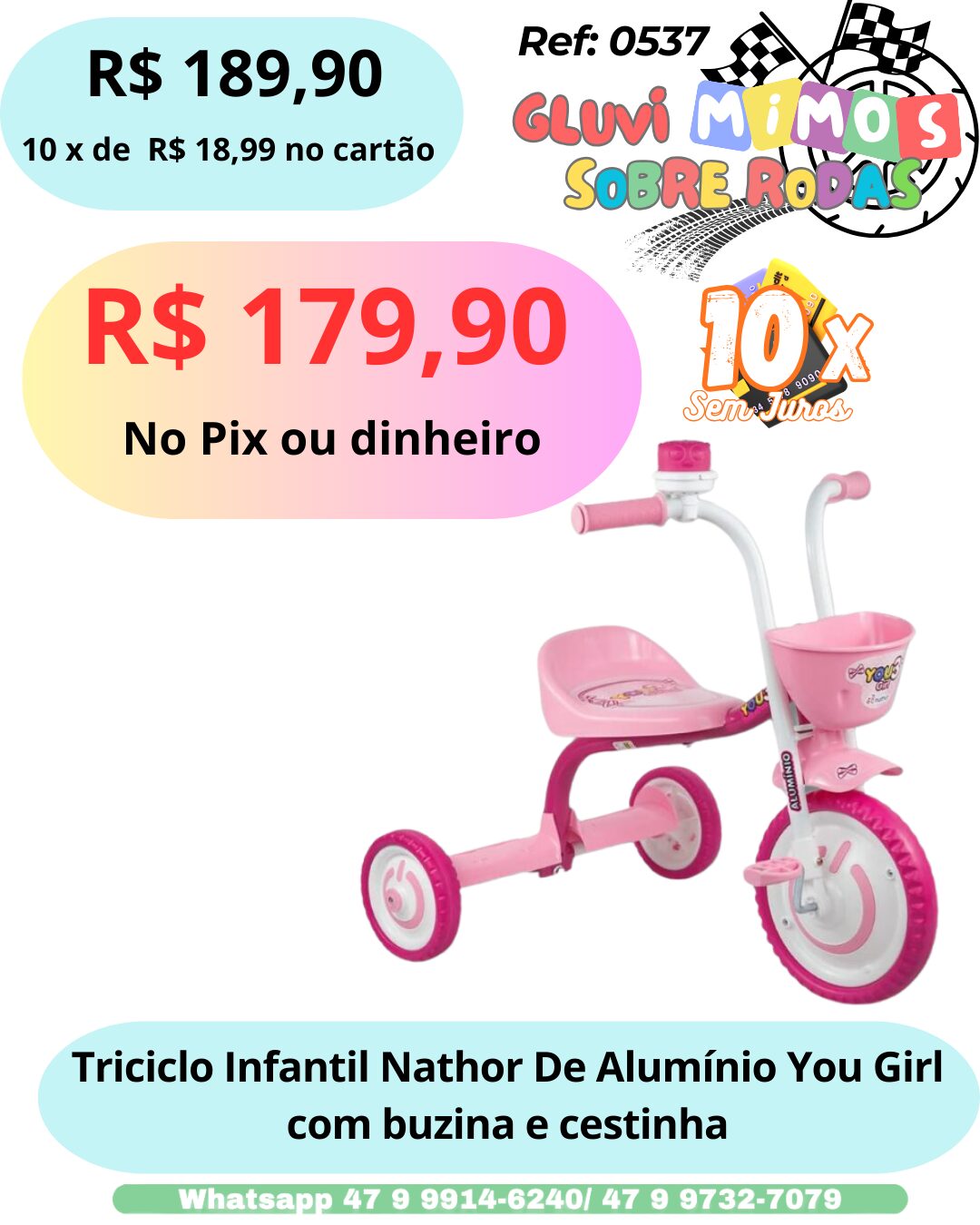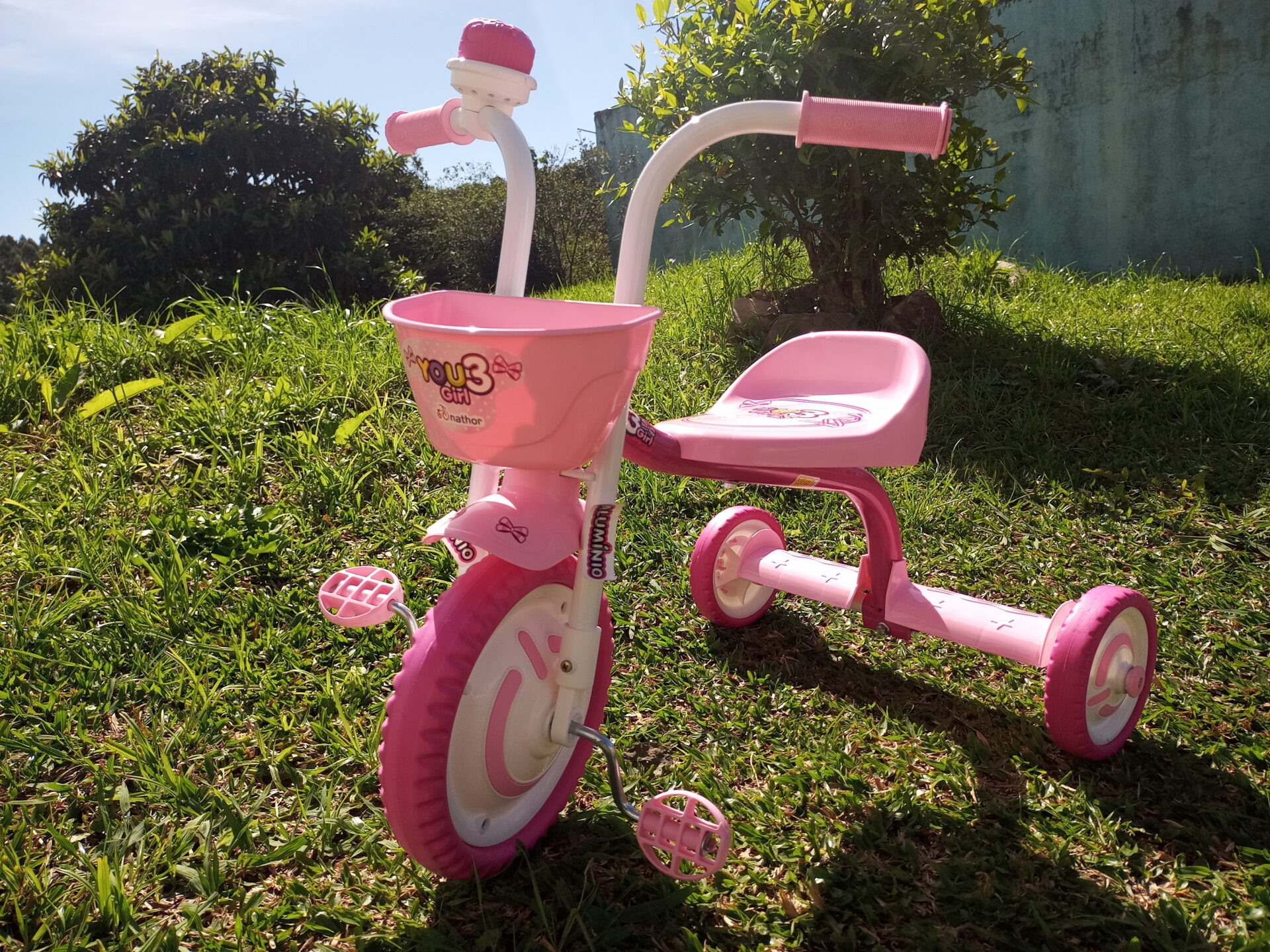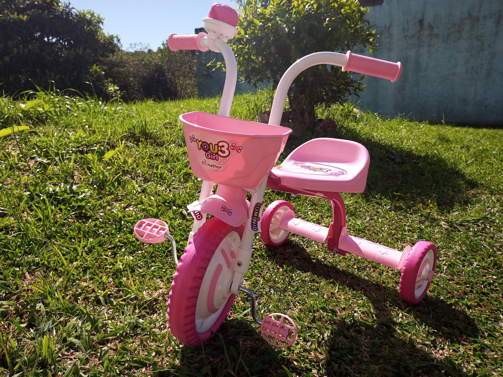 Triciclo Infantil Nathor You 3 Girl – Rosa/Branco, completamente dinâmico e ergonométrico.