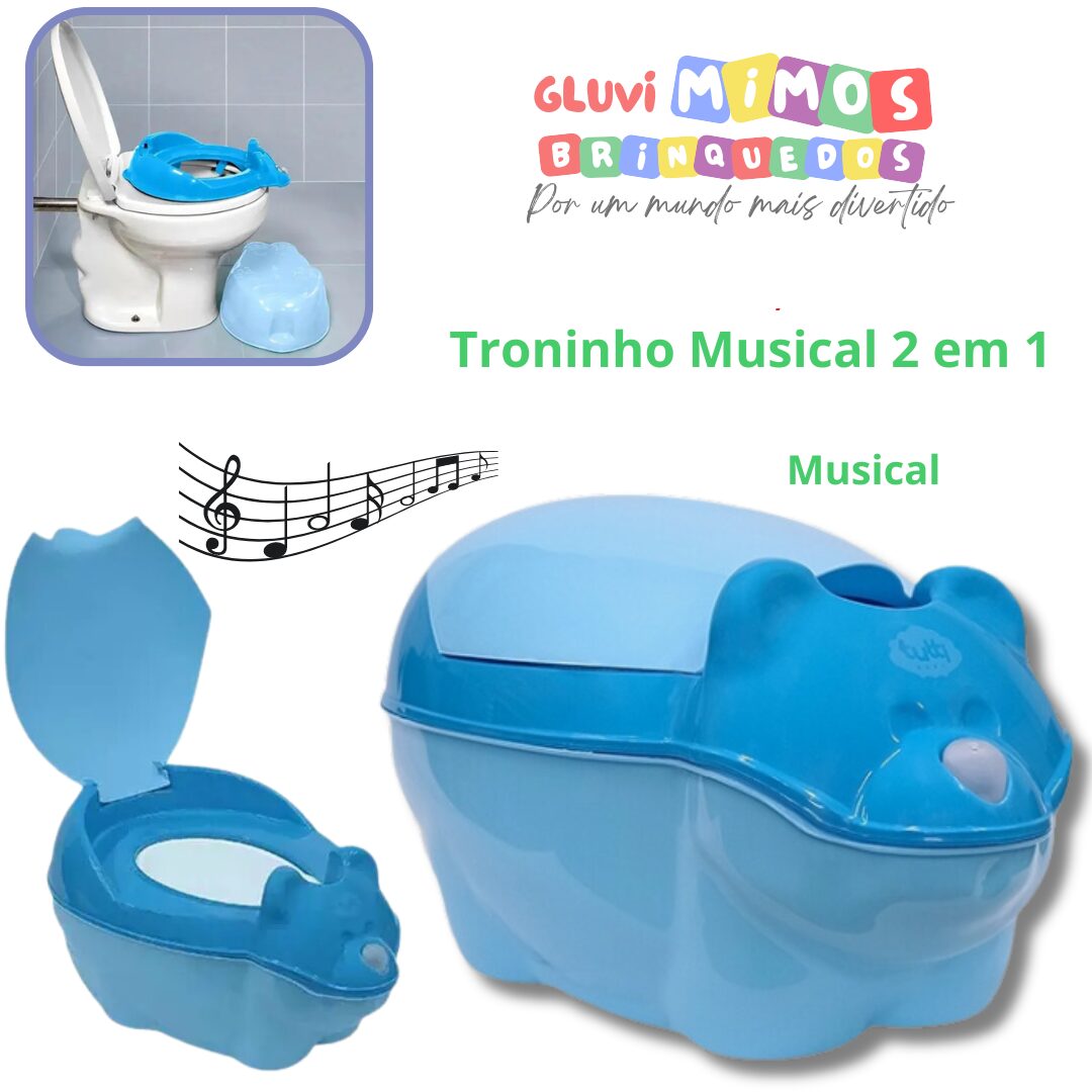 Tocando no nariz do Troninho Infantil Musical Tutti Baby ele irá tocar uma música divertida para as crianças, o que para elas pode ser um motivo a mais para largarem as fraldas.