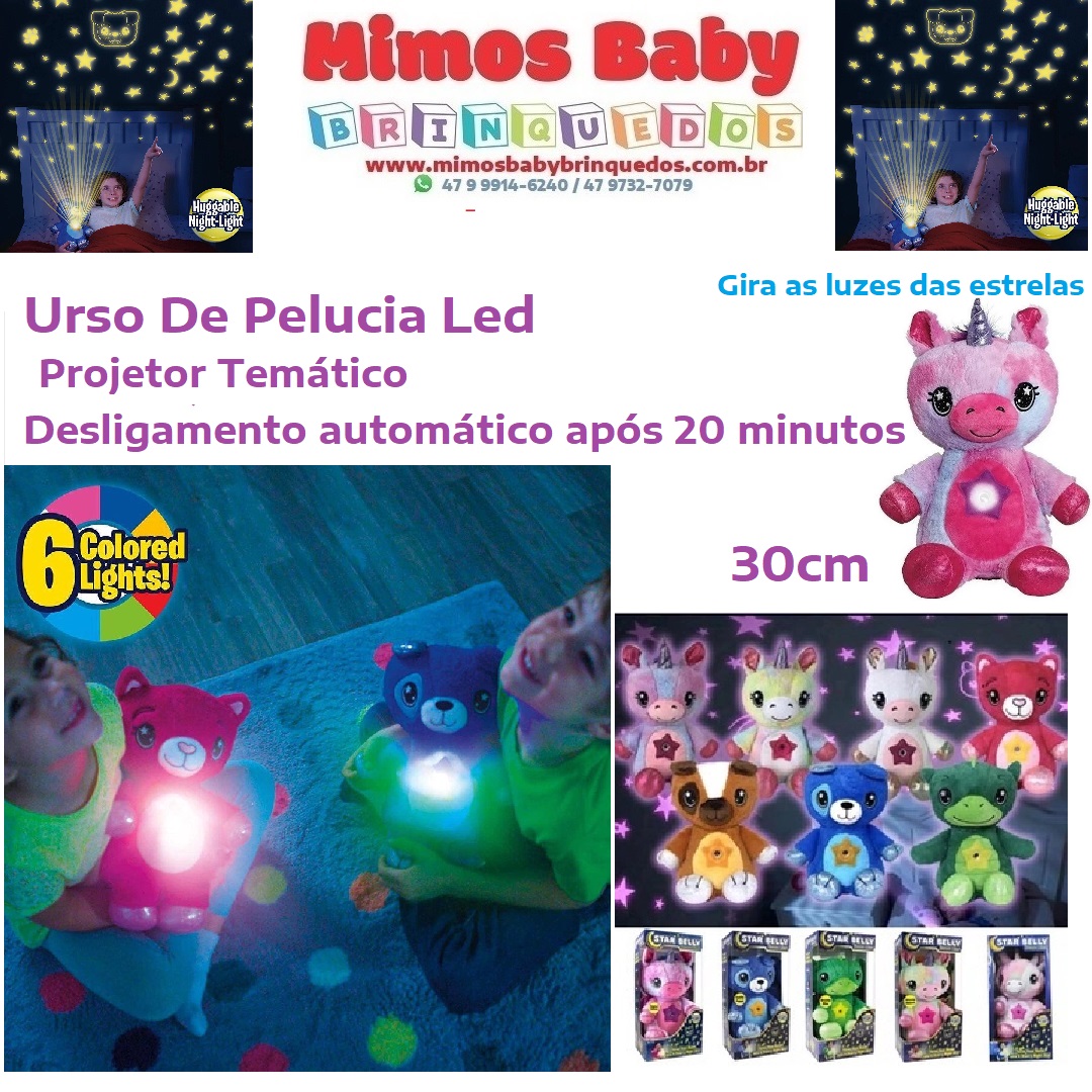 Urso de Pelúcia infantil com projetor de luz temático para a noite, com música para acalmar seu bebê.