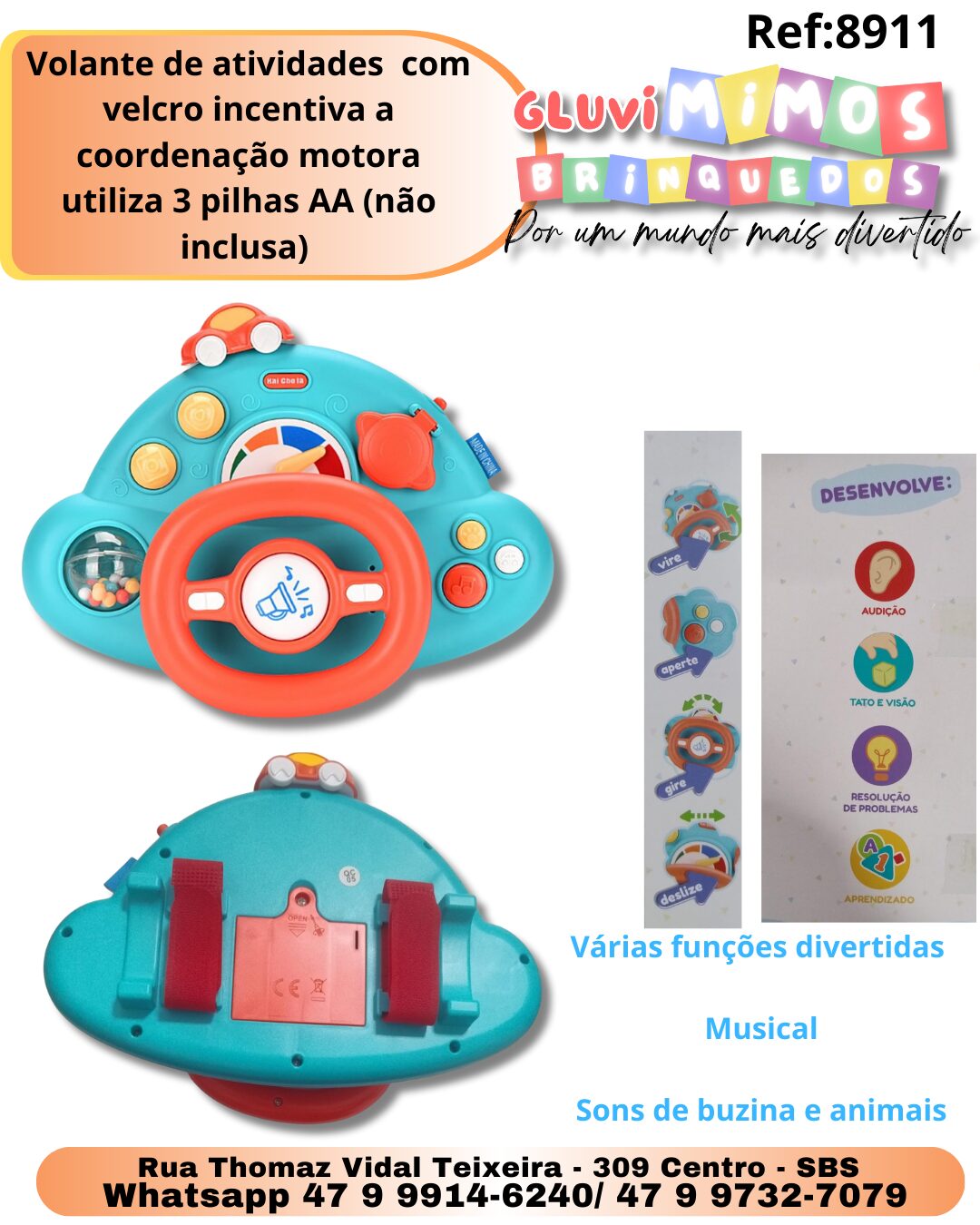 Seja o primeiro a avaliar “Volante de atividades com velcro incentiva a coordenação motora utiliza 3 pilhas AA (não inclusa)”